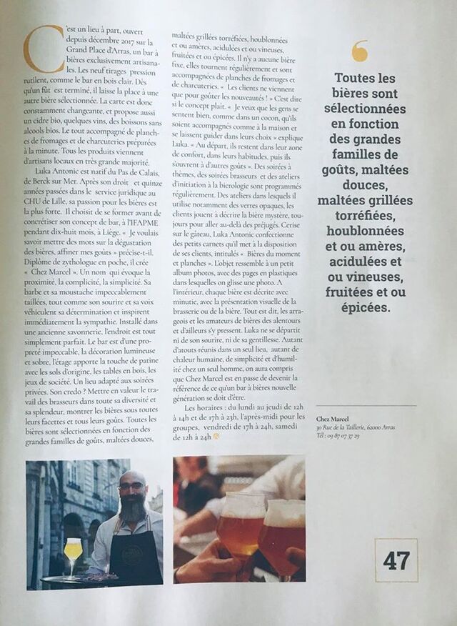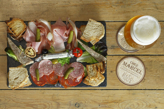 Chez Marcel célèbre la bière artisanale, le tout accompagné de douceurs salées et sucrées dans une ambiance cosy et chaleureuse. Plats du terroir, frites fraîches, salades, planches de charcuteries, de fromages, sucrées... accompagneront notre sélection de bières artisanales régionales !